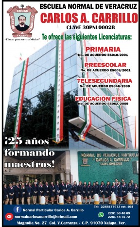 Recuerda que para ingresar a esta escuela Normal Particular Carlos A. Carrillo debes hacer el proceso como lo marca la convocatoria para todas las Normales del Estado, la cual ya está publi... Fuente Oficial